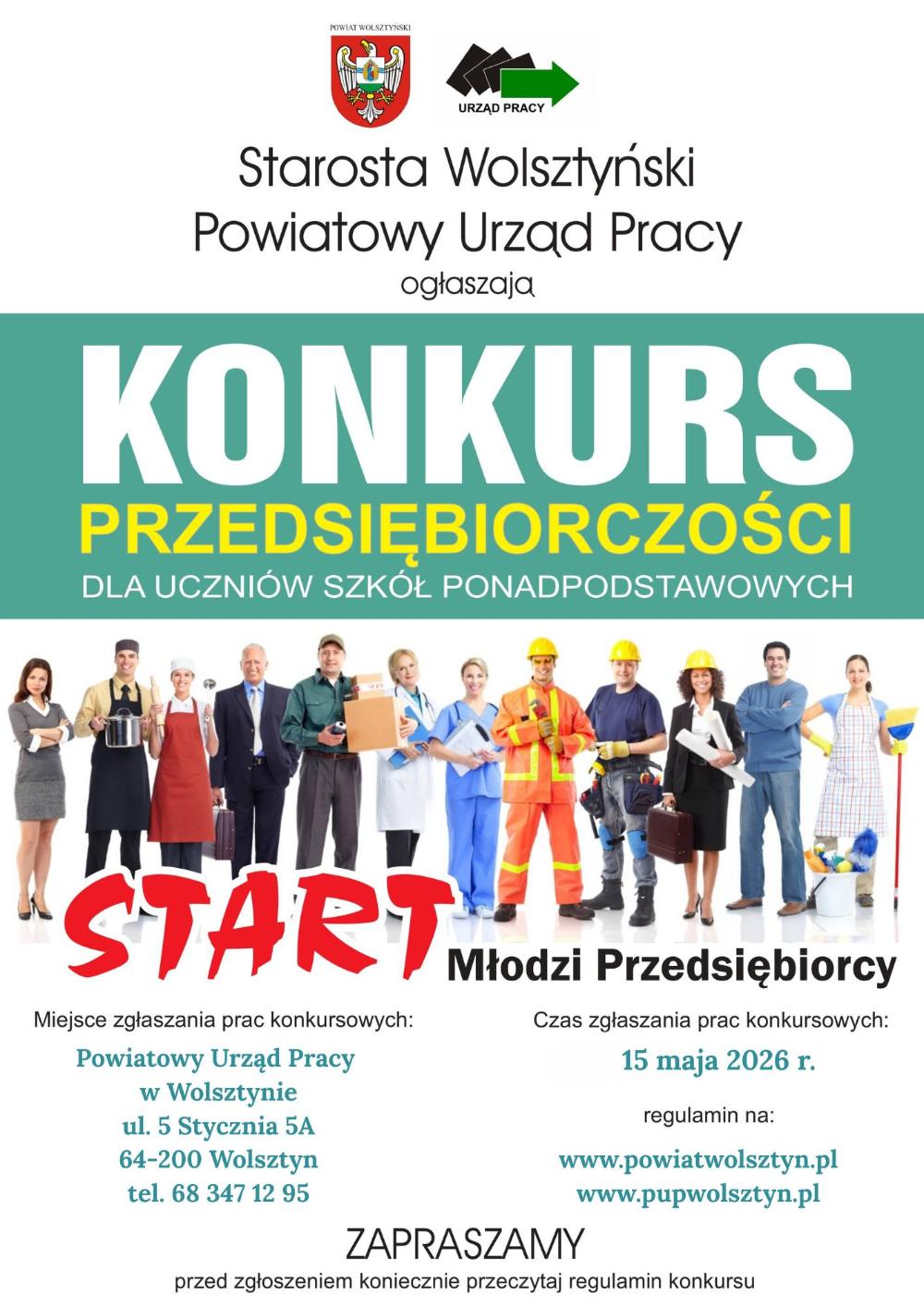 Starosta Wolsztyński oraz Powiatowy Urząd Pracy w Wolsztynie zapraszają uczniów szkół ponadpodstawowych z terenu powiatu wolsztyńskiego do udziału w konkursie „Start – Młodzi Przedsiębiorcy”.